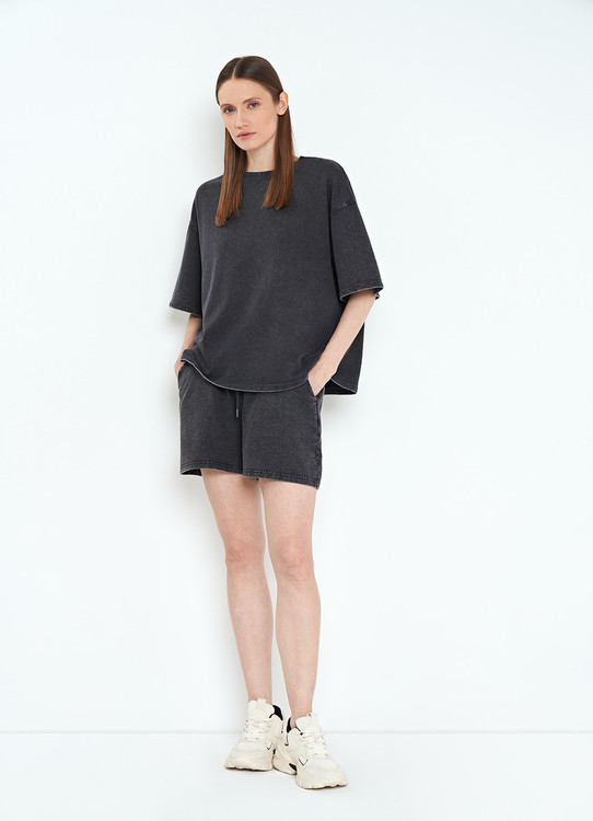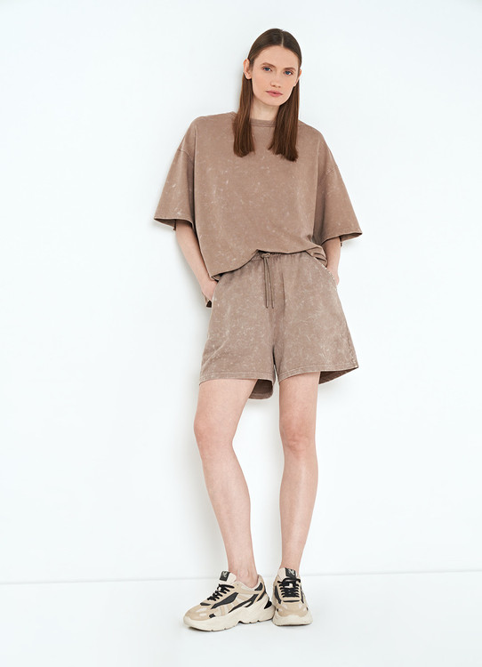 شورتک: دورکمر ۷۶/باکش ۱۰۲// دور باسن ۱۱۴/باکش ۱۳۴// دور ران ۷۶/ باکش ۹۴ // قد ۴۰