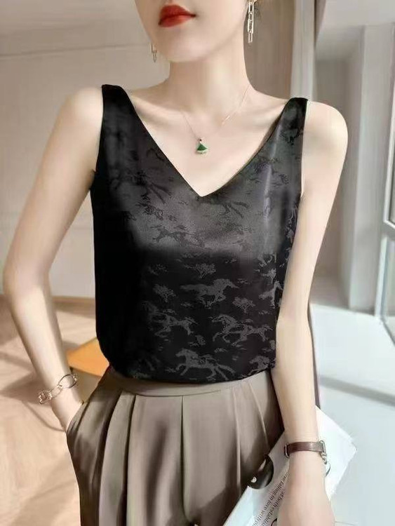 ساتن طرح اسب / نرم و سبک / قسمت سینه از داخل آستر دارد